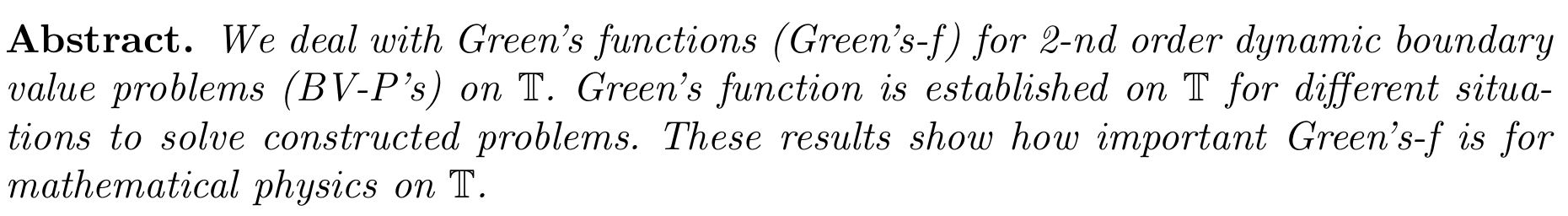 Keywords: Time scales, Green’s function, conjugate problems, eigenvalue problems